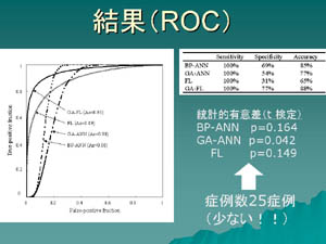 ・微小石灰化像良悪性鑑別のための人工ニューラルネットワーク法とファジィ推論法のROC比較評価,(李 鎔範,蔡 篤儀),医用画像情報学会雑誌,vol.21,no.1,pp.122-130,2004. |